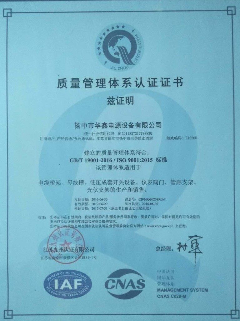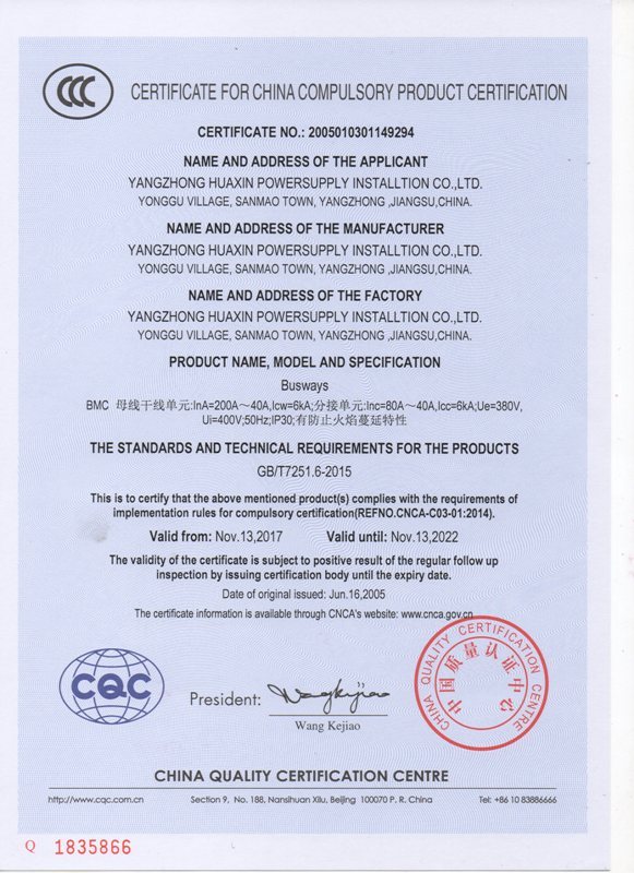 Основываясь в 1996 году, Yangzhong Huaxin Power Equipment Co., Ltd - профессиональный производитель и экспортер, который занимается проектированием, разработкой и производством энергетического оборудования. Мы расположены в городе Янчжонг, провинция Цзянсу, с удобным транспортным доступом. Мы специализируемся на кабельном лотке, высоком низком напряжении путей автобуса, шкафу для выключателя шины, проведении стержня, сосновой линии якоря, интегрированной проводки и так далее. Все наши продукты соответствуют международным стандартам качества и высоко ценятся на различных рынках по всему миру. Охватывая площадь 26000 квадратных метров, у нас сейчас более 200 сотрудников, кроме того, у нас есть сильная команда, разрабатывающая новую науку и технику. Наши хорошо оборудованные объекты и отличный контроль качества на всех этапах производства позволяют нам гарантировать общую удовлетворенность клиентов. Кроме того, мы были сертифицированы ISO9001: 20000, CCC.